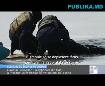 "În ajutor vin salvatorii, care sunt echipaţi cu o barcă, vestă de salvare, funie şi alte obiecte. Ei trebuie să se deplaseze târâş pentru a mări suprafaţa de sprijin", a explicat un specialist de la SSE.