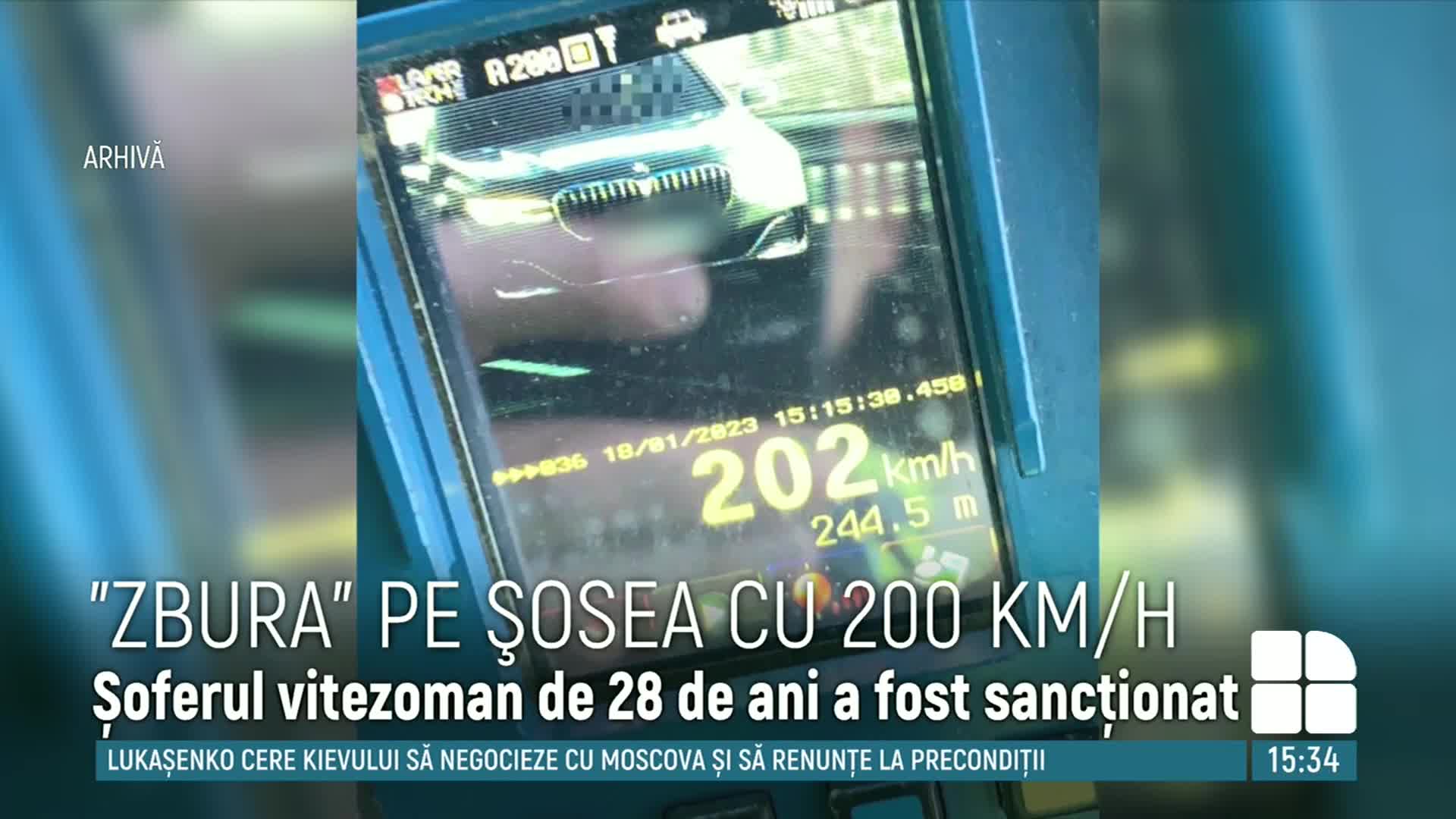 Un șofer care conducea cu viteza de 202 km pe oră, acolo unde limita admisă este de 90 km pe oră, a fost surprins în trafic de către inspectorii de patrulare, în seara zilei de miercuri.