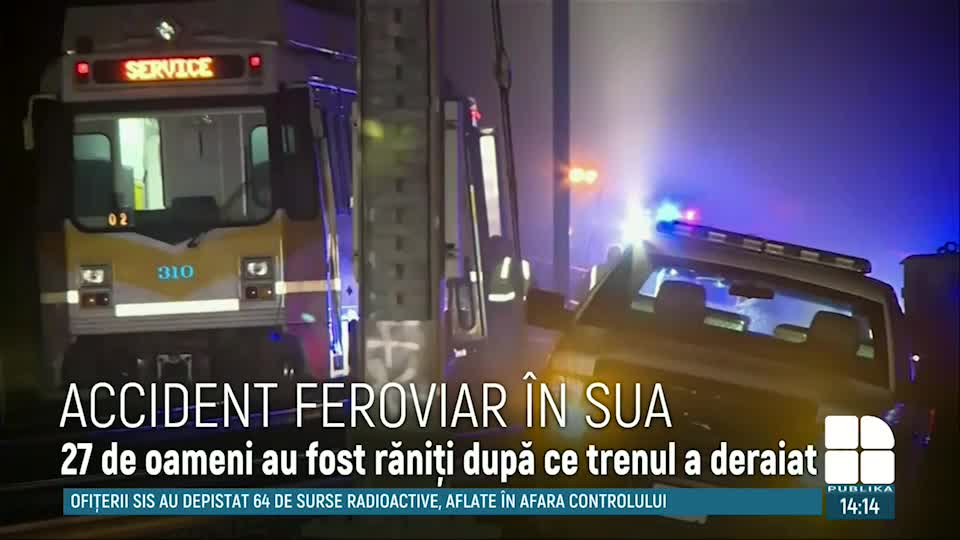 Accident feroviar grav în statul american California. 27 de oameni au fost răniţi, după ce trenul în care se aflau a deraiat de pe şine. 13 dintre victime au fost internate, iar restul au primit ajutor medical la faţa locului. Pasagerii garniturii sunt şocaţi de cele întâmplate. "Oamenii nu erau panicaţi. Bărbatul care era în faţa mea sângera. Am luat o batistă şi i-am legat-o în jurul piciorului. Câteva persoane au fost rănite grav şi au fost deja transportate la spital."