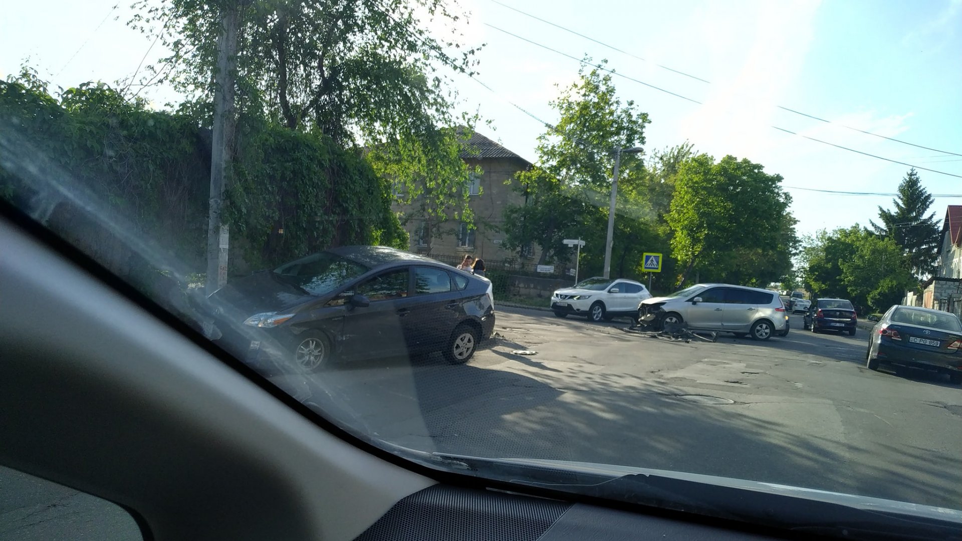 Accident violent în Capitală. Două mașini s-au ciocnit la intersecția străzilor Vissarion Belinski și Ion Neculce. În urma impactului, unul dintre automobile a fost proiectat într-un stâlp.