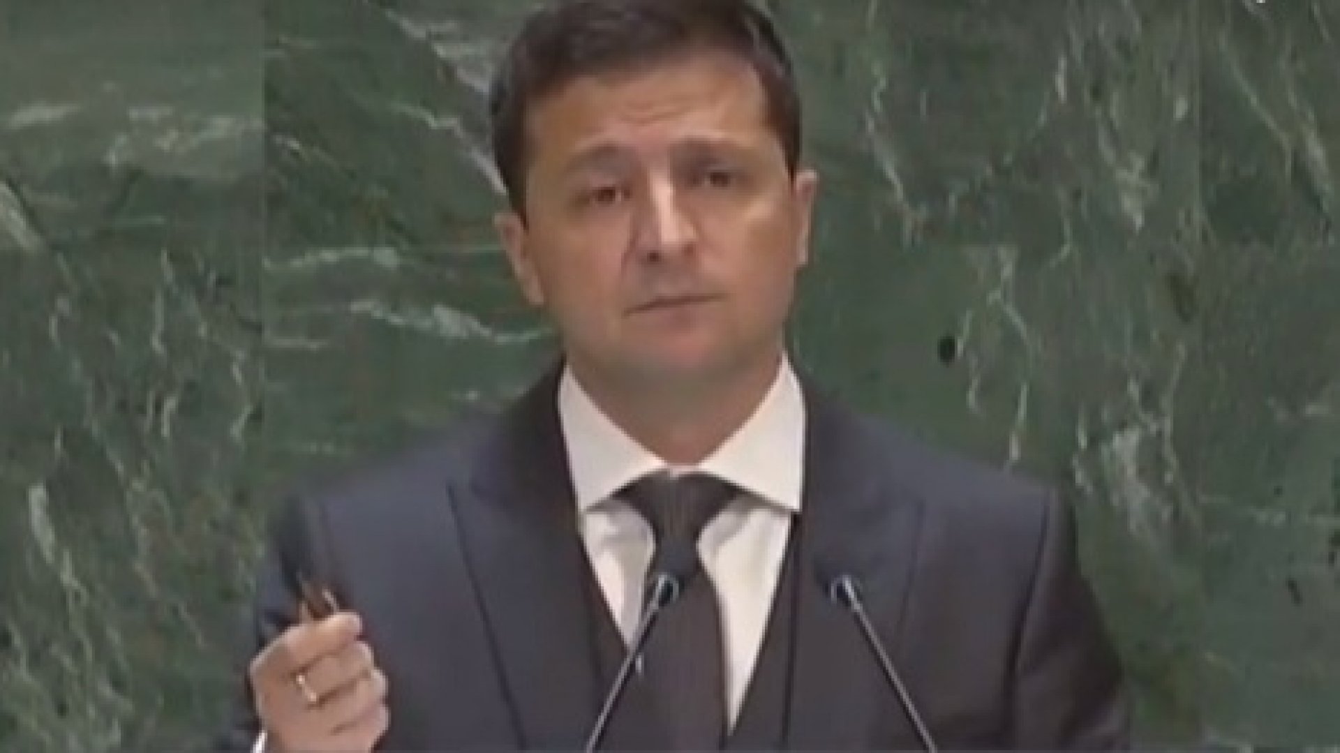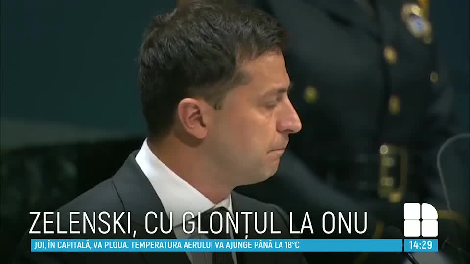 Președintele Ucrainei, Vladimir Zelenski a ținut un discurs în cadrul Adunării Generale a ONU. Zelenski a vorbit despre războiul din Donbas şi a menţionat că în secolul 21 nu există război străin şi că nimeni nu poate să se simtă în siguranţă, transmite pravda.com.ua. De menţionat este faptul că Preşedintele a adus cu sine glontele cu care a fost împușcat cântărețul de operă Vasili Slipak.