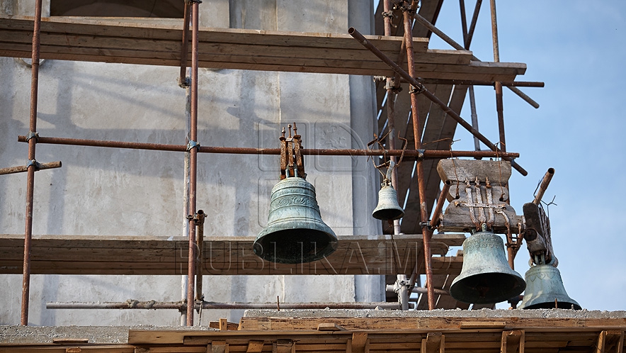 În urma ploilor de săptămâna trecută, apa s-a scurs pe pereţii proaspăt zugrăviţi, iar vântul puternic a avariat aproximativ 100 de metri pătraţi din acoperiş şi a doborât crucile de pe cupolă.