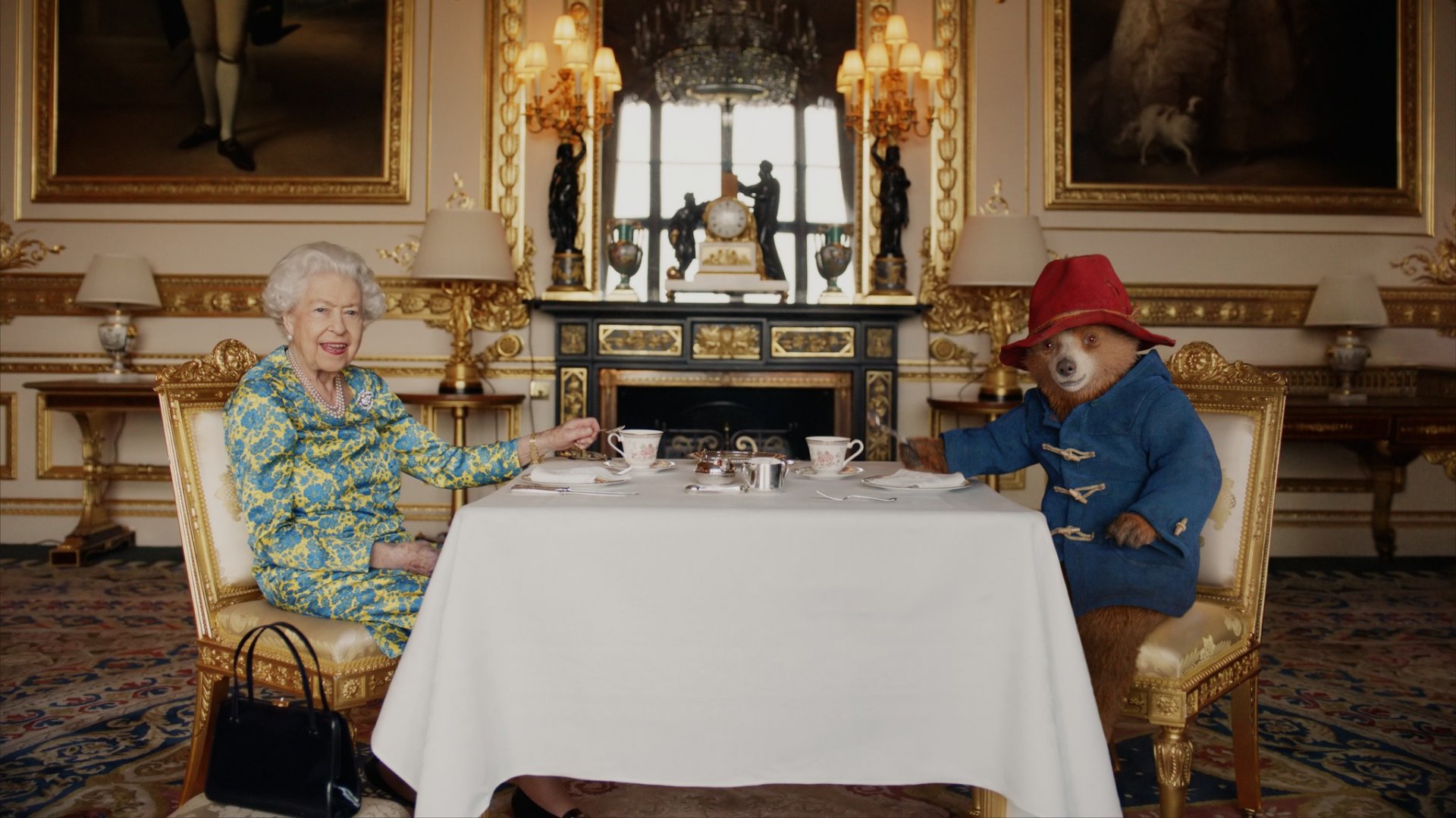 La marele concert din față Palatului Buckingham, regina a fost prezentă, într-o manieră inedită. Într-un montaj realizat pe calculator, suverana a luat ceaiul cu ursuleţul Paddington, faimosul personaj din literatura pentru copii, mare amator de sendvișuri cu marmeladă.