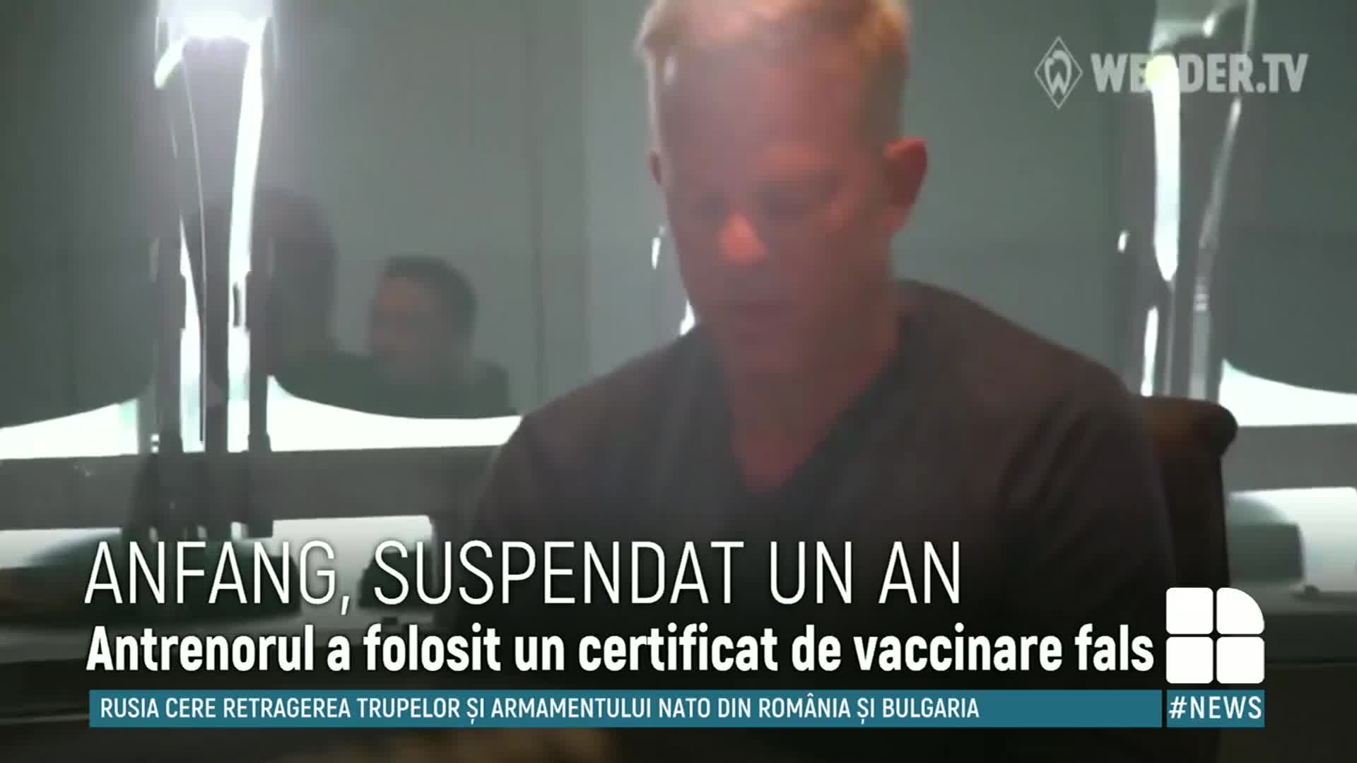 Antrenorul german Markus Anfang, care a demisionat de la Werder Bremen în noiembrie, a fost suspendat un an pentru prezentarea unui certificat fals de vaccinare împotriva COVID-19. Decizia a fost luată de Federația Germană de Fotbal, care a verificat și analizat informațiile prezentate.