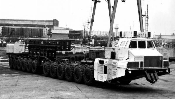 Proiectul MAZ a fost dezvoltat la sfârşitul anilor 70, în mare secret, iar primul model a fost creat în anul 1982. Cel mai lung camion din lume funcţiona cu două motoare şi suporta o încărcătură de 360 de tone.