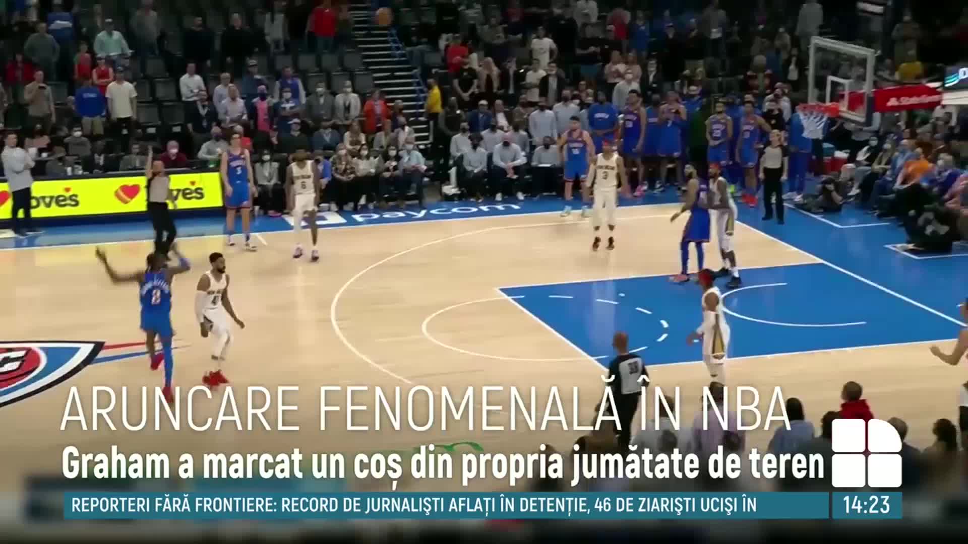 Show de zile mari în liga profesionistă nord-americană de baschet. Jucătorul grupării New Orleans Pelicans, Devonte Graham, a reușit un "buzzer beater" incredibil în meciul cu Oklahoma City Thunder. Graham a aruncat balonul din jumătatea proprie de teren.