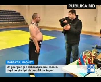 Un antrenor din Georgia, care a atras atenţia întregii lumi în 2011, după ce şi-a lipit 50 de linguri de spate şi piept, şi-a doborât propriul record. De această dată, bărbatul, care are abilitatea de a atrage obiecte din metal, a reuşit să-şi prindă de el 53 de linguri.