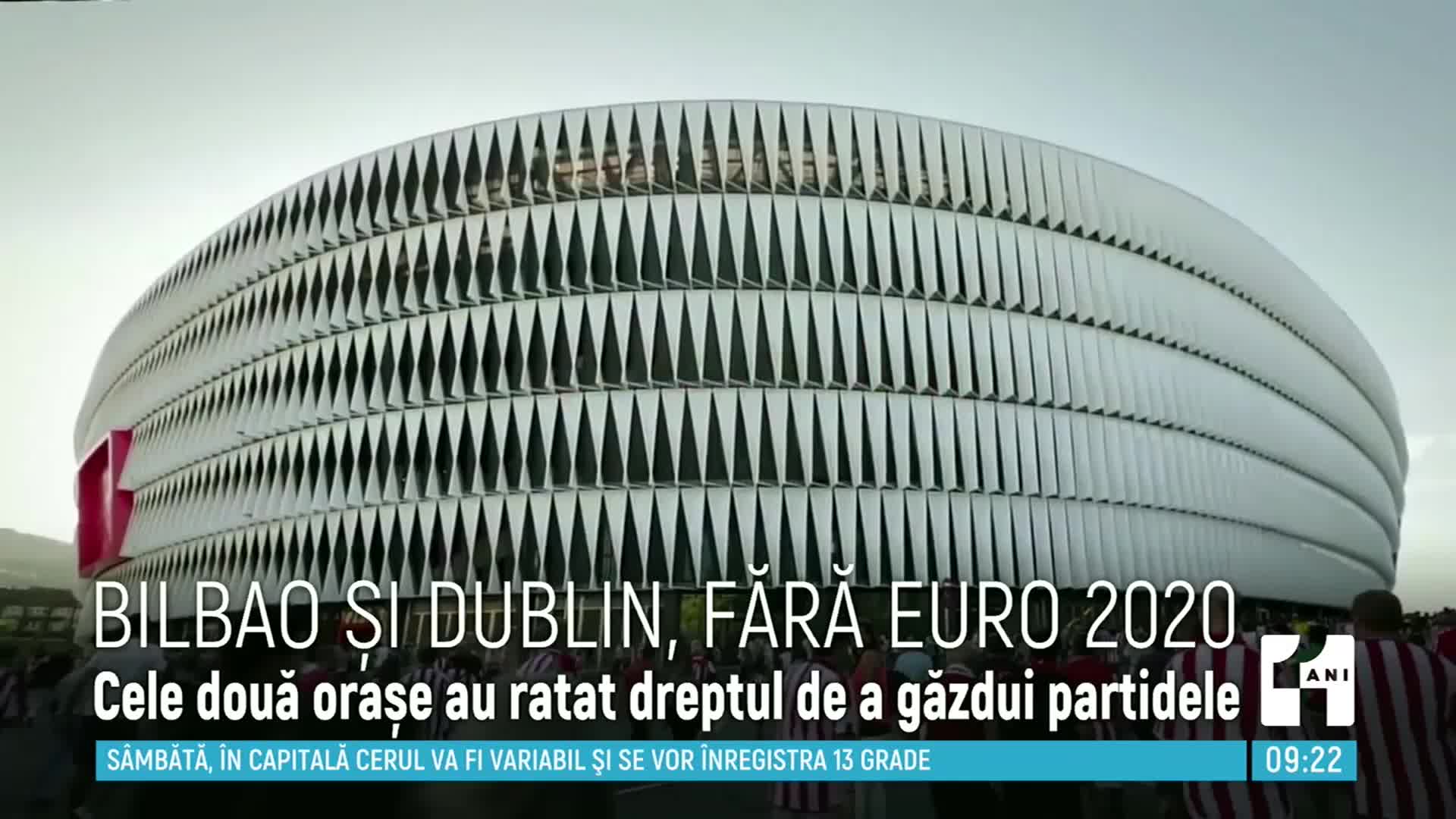 Bilbao și Dublin nu vor găzdui meciuri de la Campionatul European de fotbal din această vară. UEFA le-a retras celor două orașe dreptul de organizare a partidelor. Din cauza pandemiei, autoritățile locale nu au putut asigura accesul suporterilor în tribune, la turneul final.
