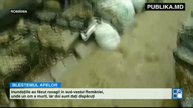 Inundaţiile au făcut ravagii în sud-vestul României. Un om a murit şi alţi doi sunt daţi dispăruţi, iar sute de case au fost afectate de apele ieşite din matcă. În doar câteva ore viiturile au făcut prăpăd. Bucăţi întregi din dealurile Mehedinţiului au luat-o la vale. Oamenii sunt disperaţi.