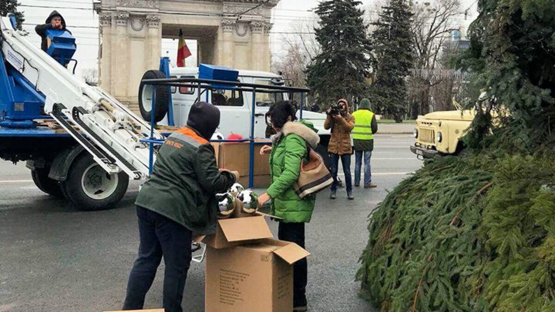 Primul pom de Crăciun care a fost adus din Ucraina a ajuns la Chişinău deteriorat. Din această cauză, municipalitatea a fost nevoită să taie, în regim de urgenţă, un alt brad.