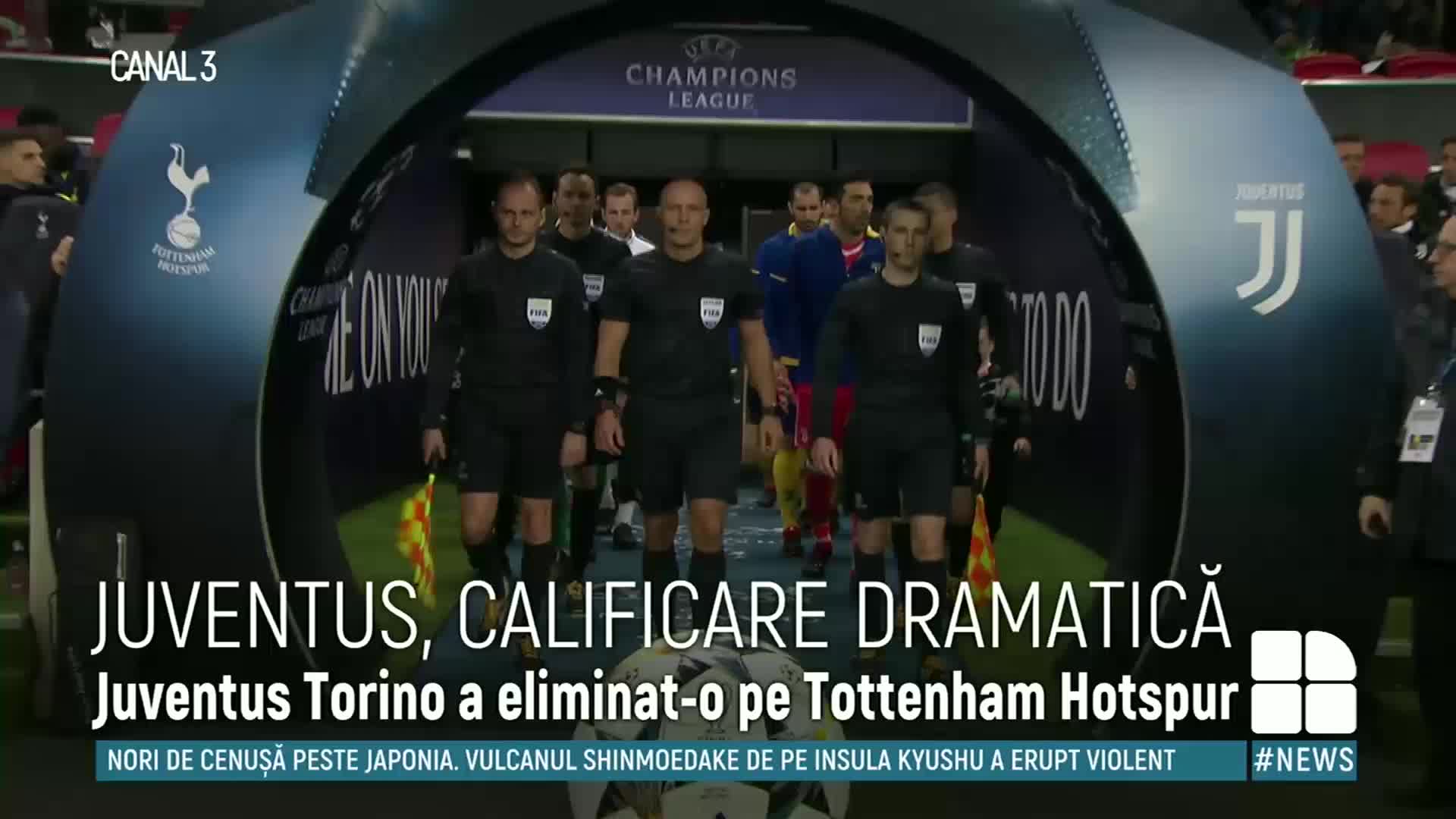 Juventus Torino s-a calificat dramatic în sferturile de finală ale Ligii Campionilor. După 2-2 în prima manșă, formația italiană a învins la Londra pe Tottenham Hotpsur cu 2-1, suficient pentru a accede în etapa următoare. Juventus a fost condusă aseară pe Wembley încă din prima repriză. În minutul 34, Son Heung-Min a înscris cu un șut de la 10 metri.