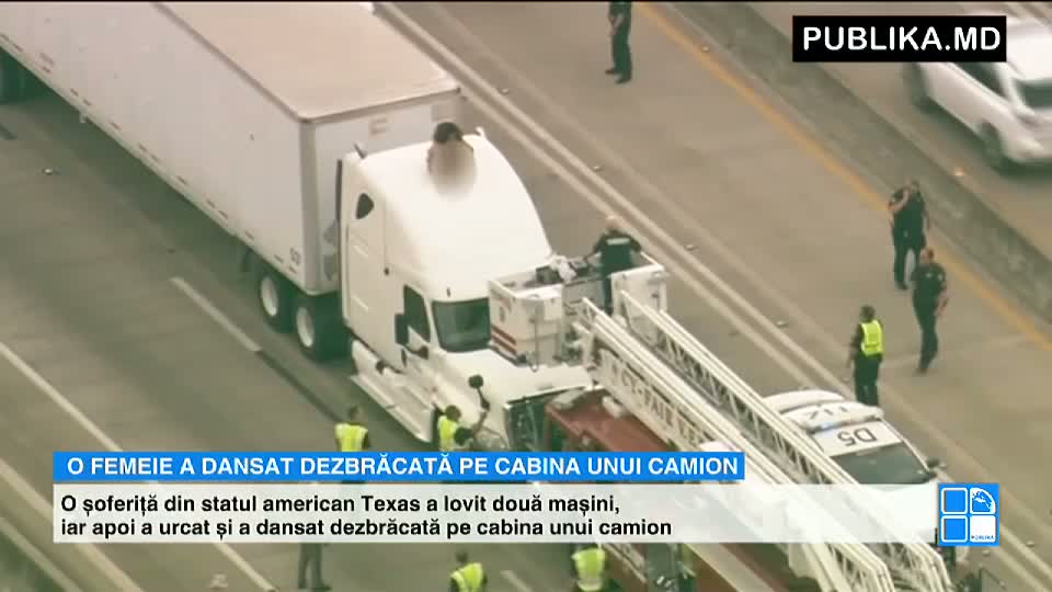 O șoferiță a lovit două mașini, iar apoi a urcat și a dansat dezbrăcată pe cabina unui camion. Incidentul s-a produs în statul american Texas.