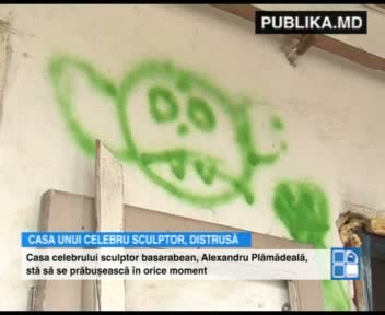 Casa celebrului sculptor basarabean, Alexandru Plămădeală, stă să se prăbuşească în orice clipă peste trecători. Chiar dacă are proprietari, clădirea istorică arată dezastruos. Apa curge prin acoperiş, tencuiala cade, iar prin preajmă e plin de gunoaie.