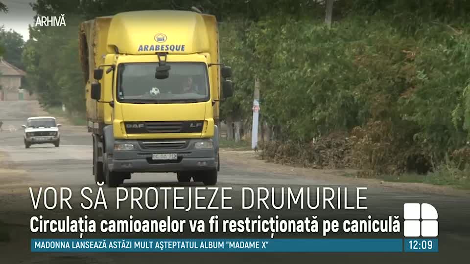 Circulaţia transportului de mare tonaj este restricţionată. Responsabilii din cadrul Ministerului Economiei precizează că odată cu intrarea în vigoare a codului galben de caniculă, între ora 10:00 și 20:00, camioanele nu pot circula pe traseeele naţionale.