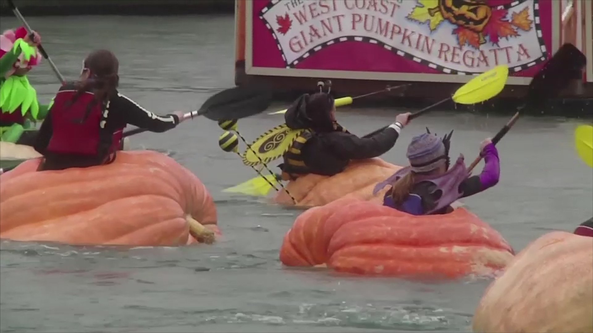 Competiție inedită în Germania. Mai mulți participanți s-au întrecut pe bărci făcute din dovleci