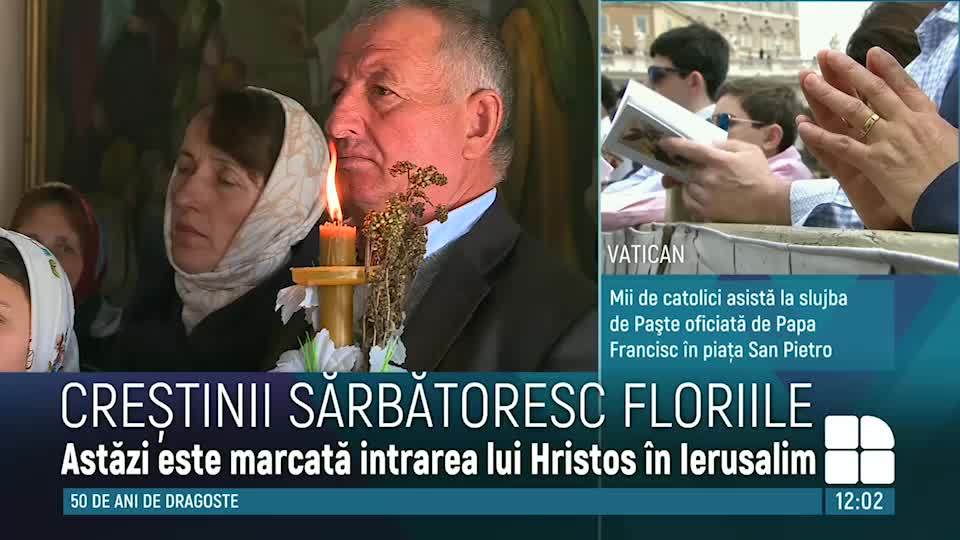 Creştinii ortodocşi sărbătoresc astăzi Floriile. Duminica a şasea din Marele Post marchează intrarea lui Iisus Hristos în Ierusalim, înconjurat de cei 12 apostoli.