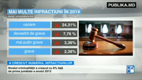 Alarmant! În Moldova creşte numărul infracţiunilor. În primele şase luni ale anului 2014 au fost înregistrate 19 603 de infracţiuni, cu 8,08% mai mult decât în aceeaşi perioadă a anului trecut, când au fost luate la evidenţă 18 138 de infracţiuni.