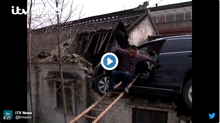 DE RÂS sau DE PLÂNS?! O mașină a rămas blocată pe acoperișul unei case (VIDEO)