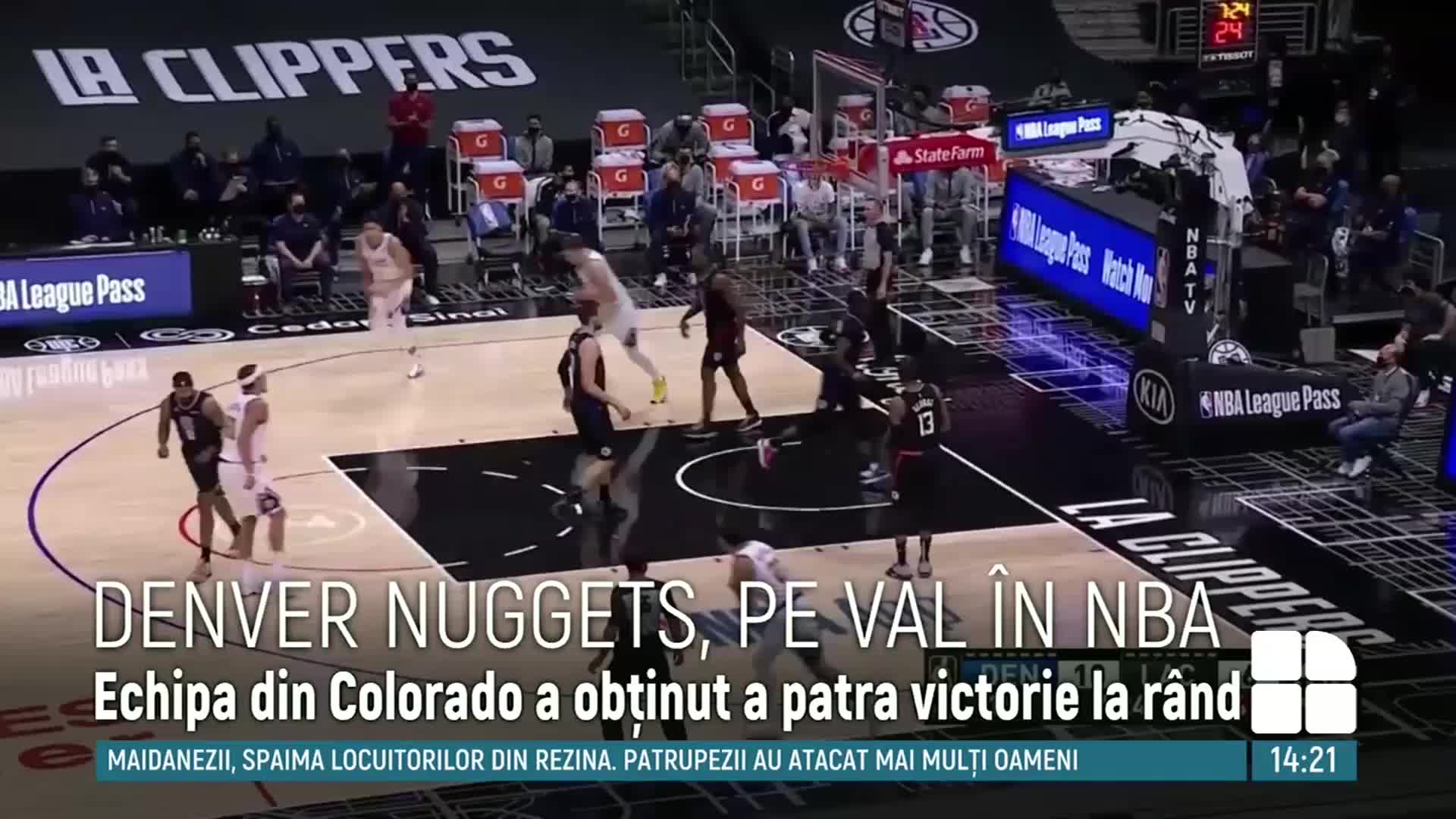 Denver Nuggets continuă seria victorioasă în liga nord-americană de baschet. Echipa din statul Colorado a obținut al patrulea succes consecutiv, reușind să învingă pe Los Angeles Clippers.