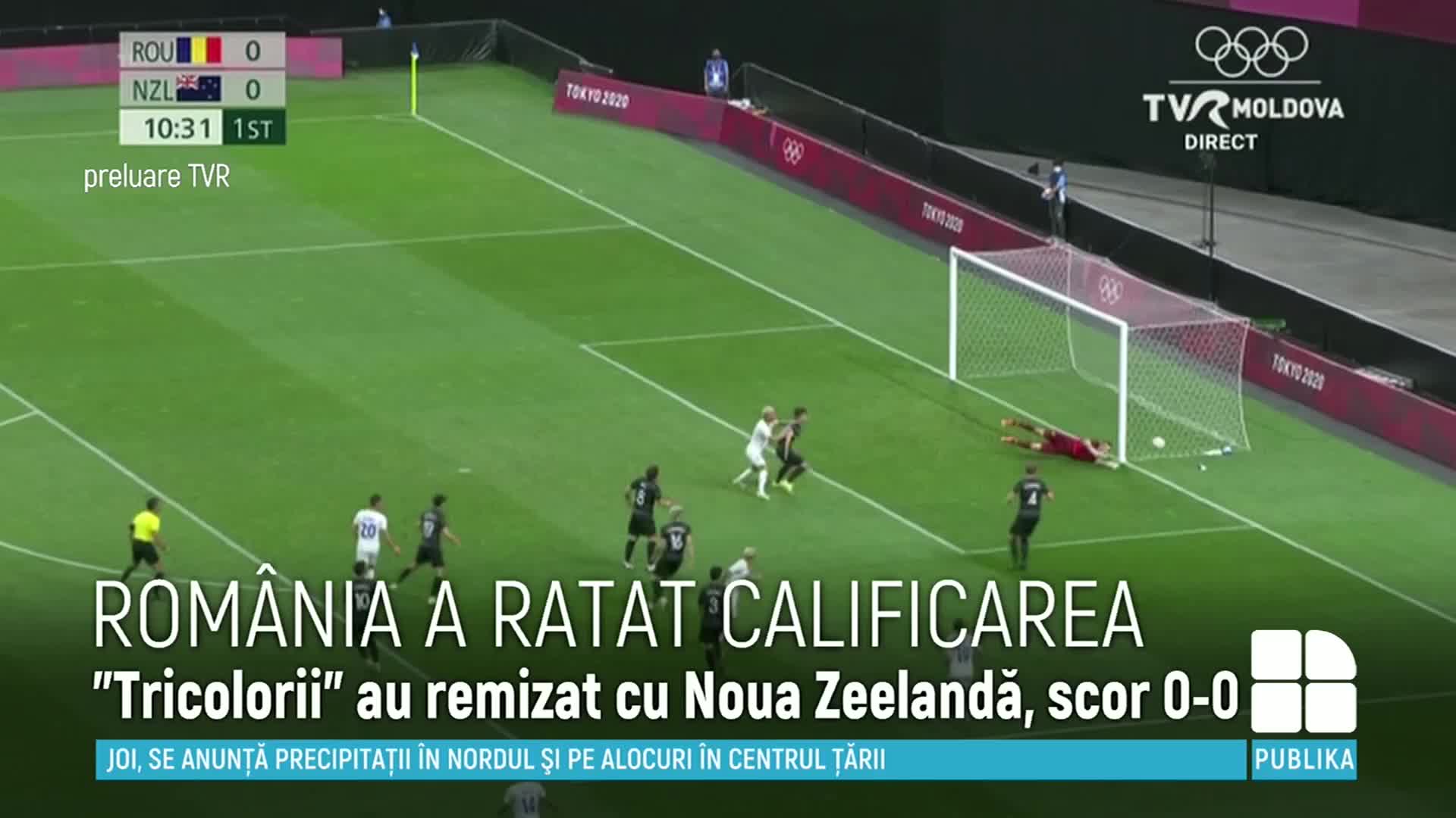 Echipa națională a României a ratat calificarea în sferturile de finală ale turneului de fotbal de la Jocurile Olimpice de la Tokyo. Discipolii lui Mirel Rădoi au încheiat la egalitate meciul cu reprezentativa similară a Noii Zeelande, scor 0-0.