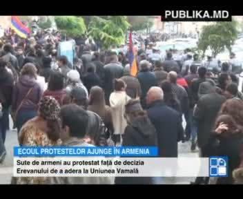 Potrivit sursei, protestul s-a desfăşurat lângă Guvernul de la Erevan unde manifestanţii au înaintat oficialilor o petiţie. În ea se stpune că decizia de aderare la, Uniunea Vamală Rusia-Belarus-Kazahstan, pune în pericol suveranitatea ţării.