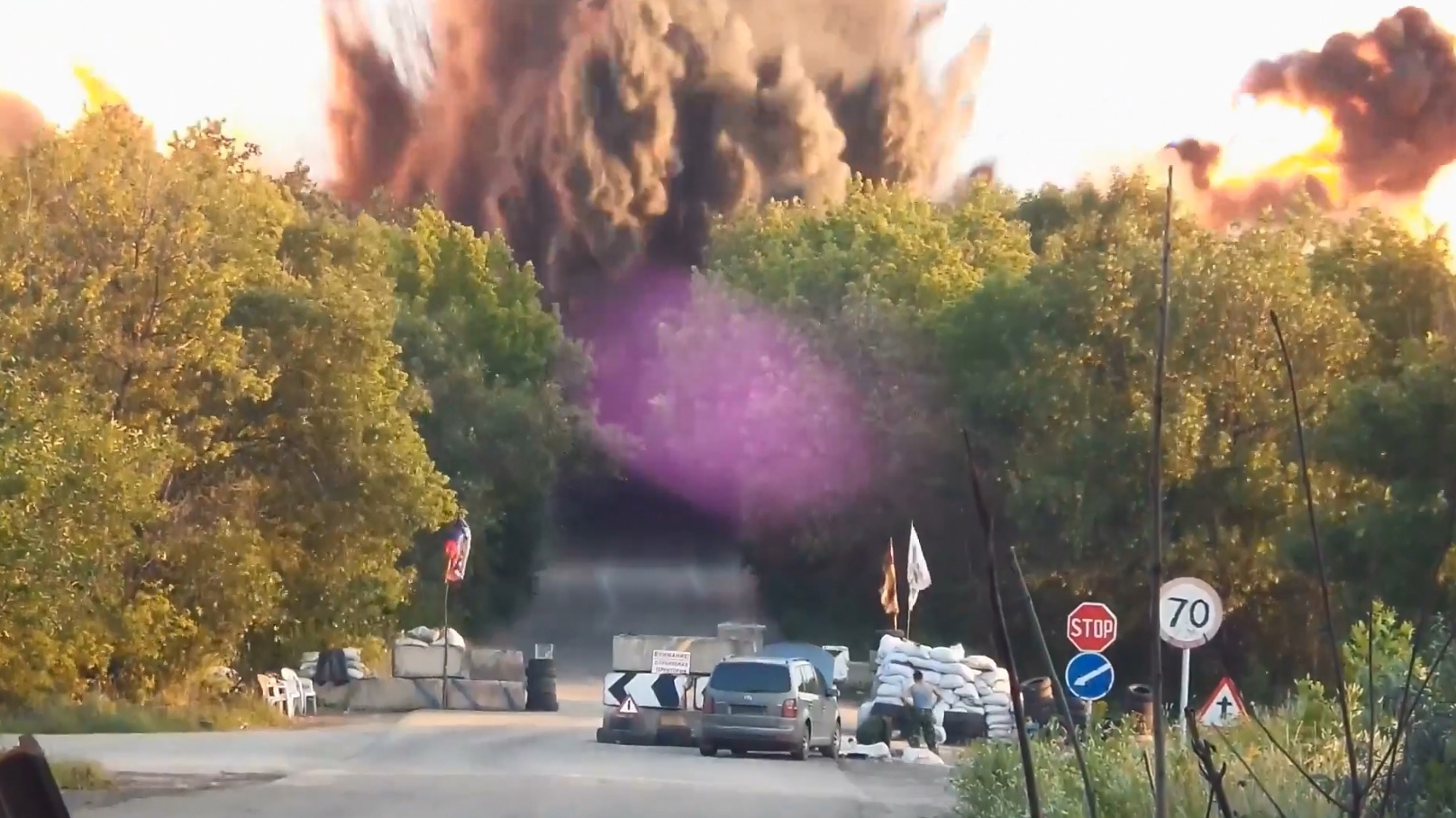 EXPLOZIE DE PROPORŢII! Momentul în care un pod din estul Ucrainei a fost aruncat în aer (VIDEO)