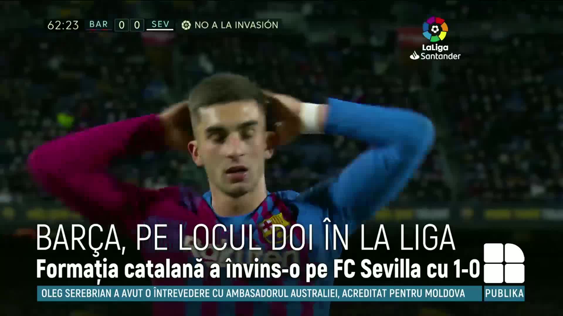 FC Barcelona a urcat pe locul secund în La Liga. Gruparea “blaugrana” a învins-o pe FC Sevilla cu 1-0 în cel mai așteptat meci al etapei a 30-a de campionat.