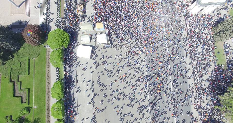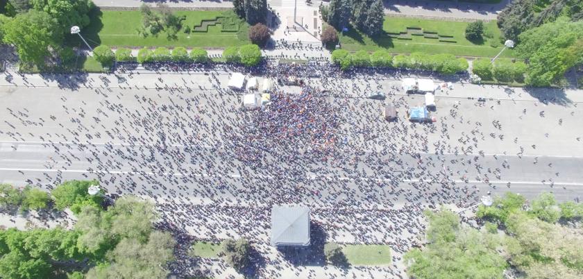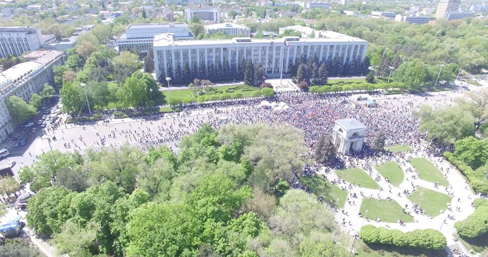 Echipa Today.MD a filmat cu Drona Piața Marii Adunări Naționale. Din imaginile surprinse de jurnalişti se vede clar că la ora 12:50, după ce coloanele de protestatari pe care le așteptau organizatorii, au ajuns în PMAN, în Piață erau în jur de 2.000-3.000 de oameni.