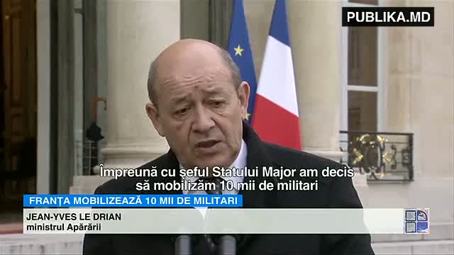 "Împreună cu şeful Statului Major am decis să mobilizăm 10.000 de militari care vor supraveghea punctele sensibile de pe întreg teritoriul ţării", a zis ministrul freancez al Apărării, Jean-Yves Le Drian.