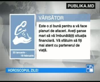 VĂRSĂTOR: Este o zi bună pentru a vă face planuri de afaceri. Aveţi şanse mari să vă îmbunătăţiţi situaţia financiară. Vă sfătuim să fiţi mai atent cu partenerul de viaţă.