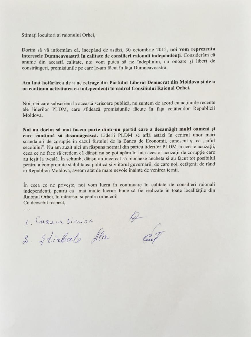Încă doi consilieri raionali au părăsit rândurile PLDM. MOTIVUL INVOCAT de aleşii locali din Orhei