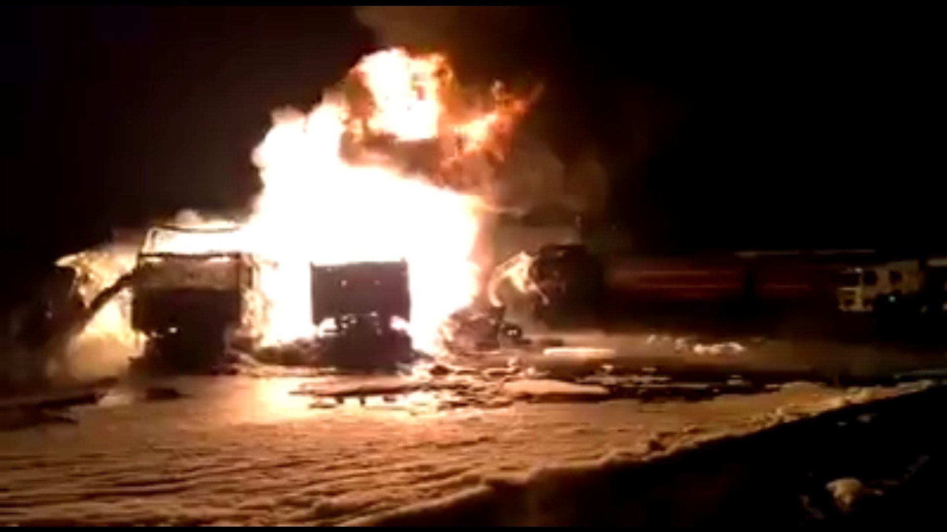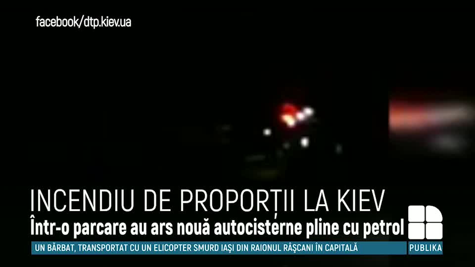 Incendiu de proporţii într-o parcare din Kiev. Nouă autocisterne pline cu petrol au fost cuprinse de flăcări. Martorii spun că au auzit mai multe explozii.