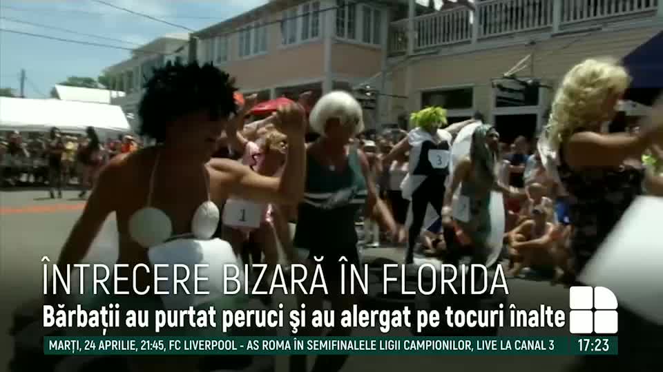 ÎNTRECERE BIZARĂ ÎN FLORIDA. Bărbaţii au purtat peruci şi au alergat pe tocuri înalte