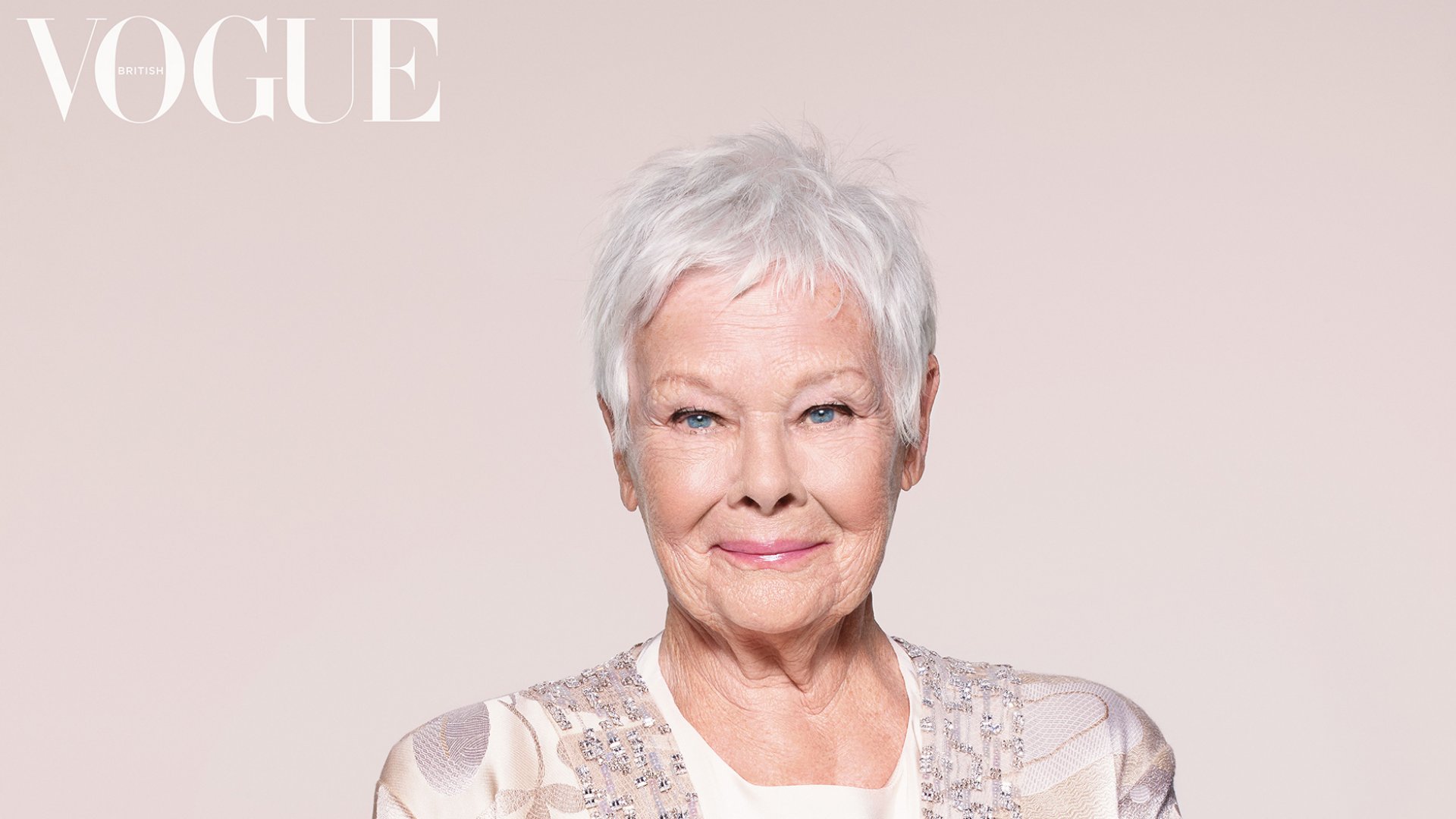 Pe coperta revistei care va fi lansată la 7 mai, Dench apare într-o bluză roz din organza înflorată Dolce & Gabbana. În alte imagini vedeta poartă o tunică din mătase crem Armani Prive.