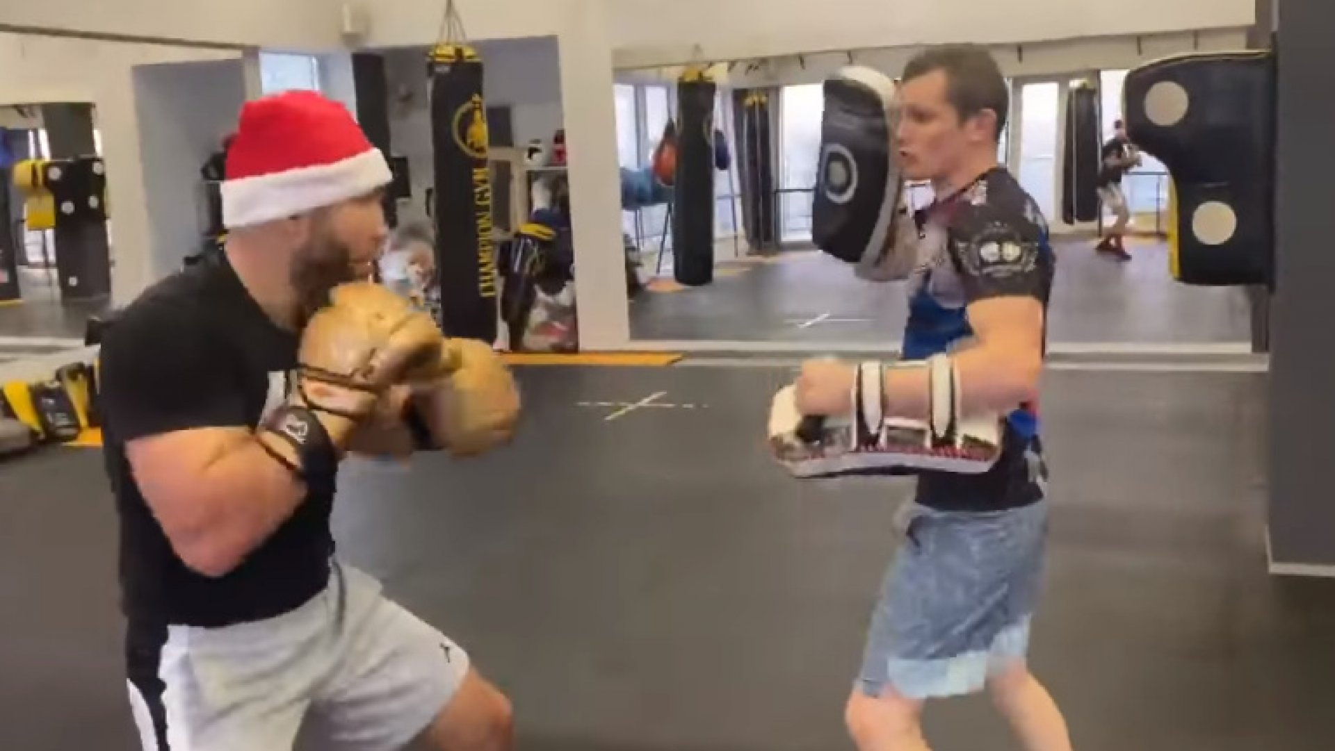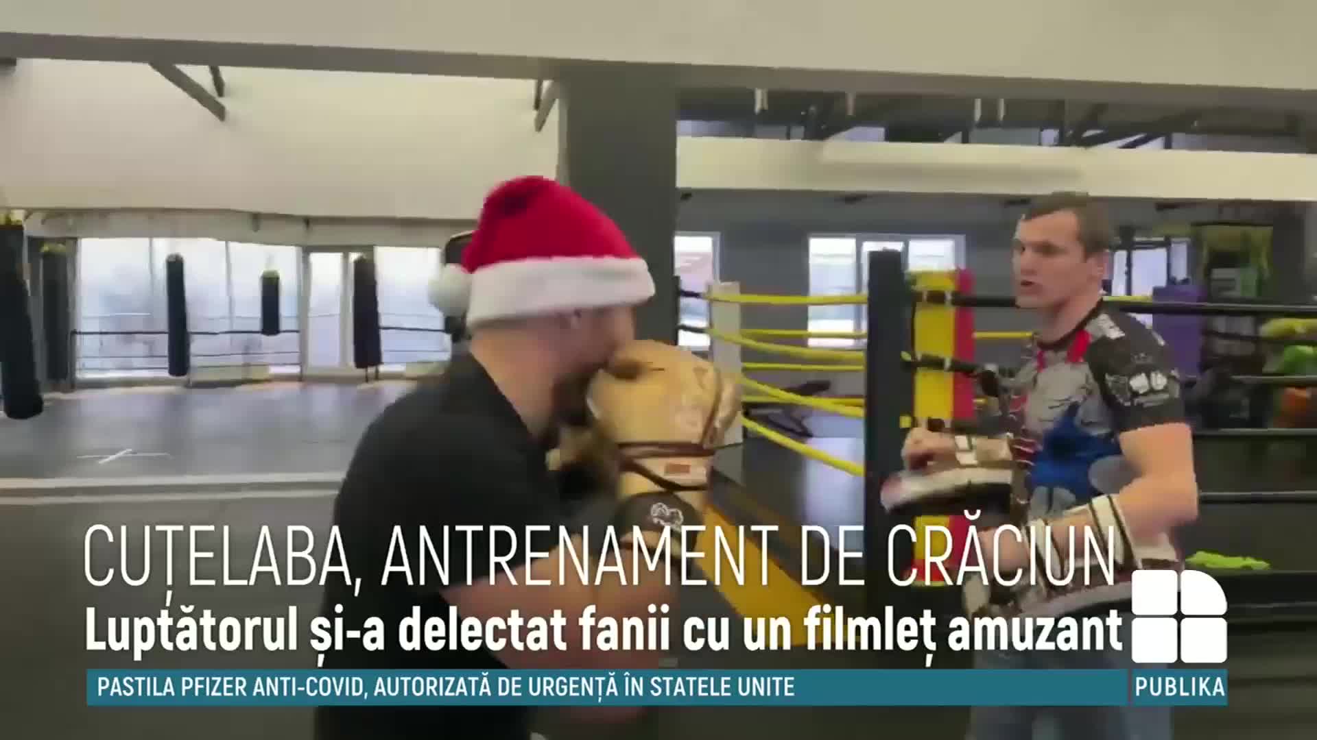 Luptătorul Ion Cuțelaba, care reprezintă Moldova în UFC, cea mai tare promoție de arte marțiale mixte, nu se odihnește nici de sărbători. Sportivul, echipat corespunzător, a avut parte de un antrenament chiar de Crăciun. După ce și-a doborât adversarul la podea, Ion le-a urat tuturor sărbători fericite.