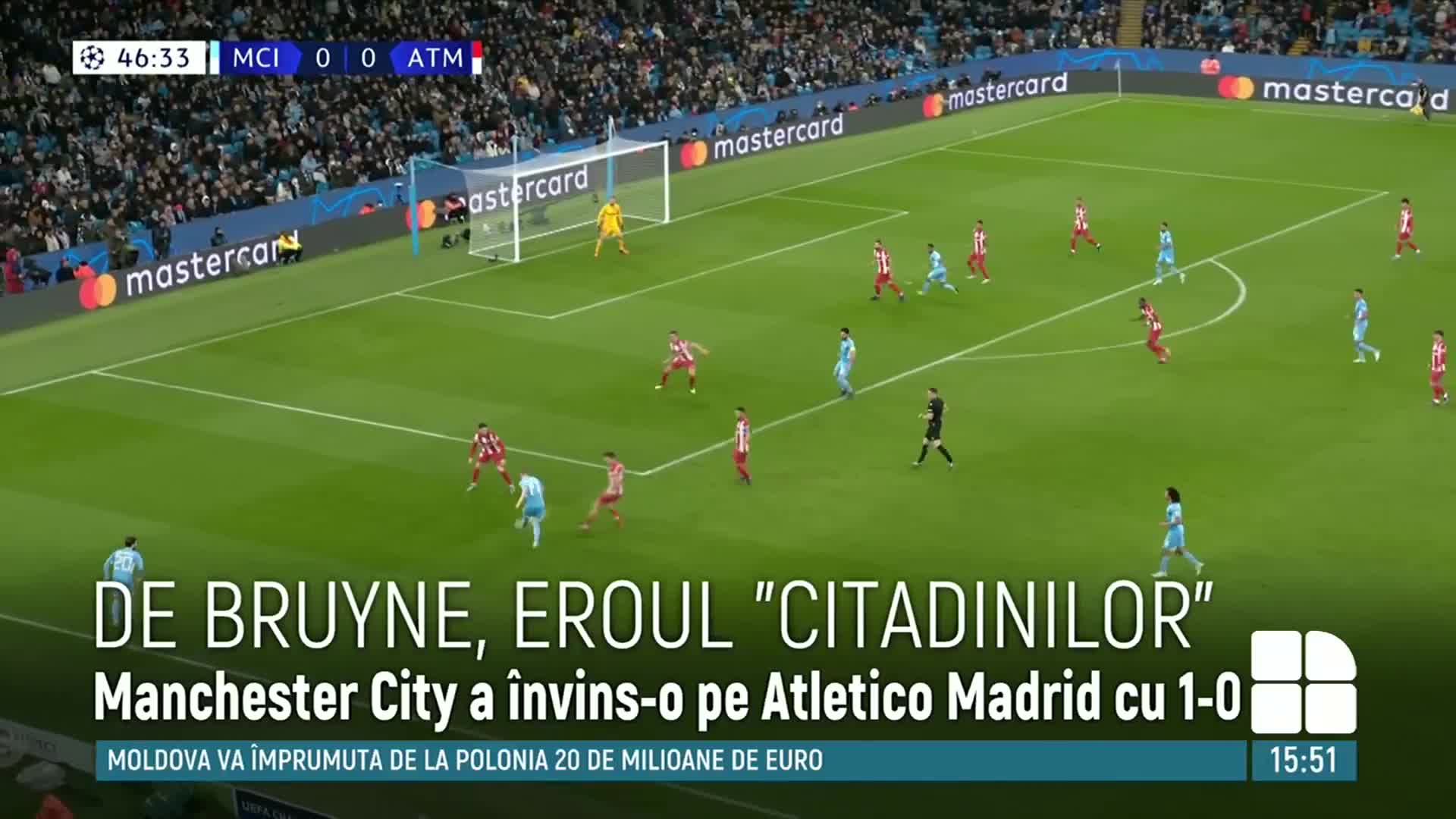 Manchester City a făcut un pas spre semifinalele Ligii Campionilor. "Citadinii" au învins-o pe Atletico Madrid cu 1-0 în prima manșă a sferturilor, care a avut loc pe City of Manchester Stadium.