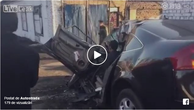 MAŞINĂ FĂCUTĂ ZOB! Şoferul a scăpat ca prin minune (VIDEO ŞOCANT)