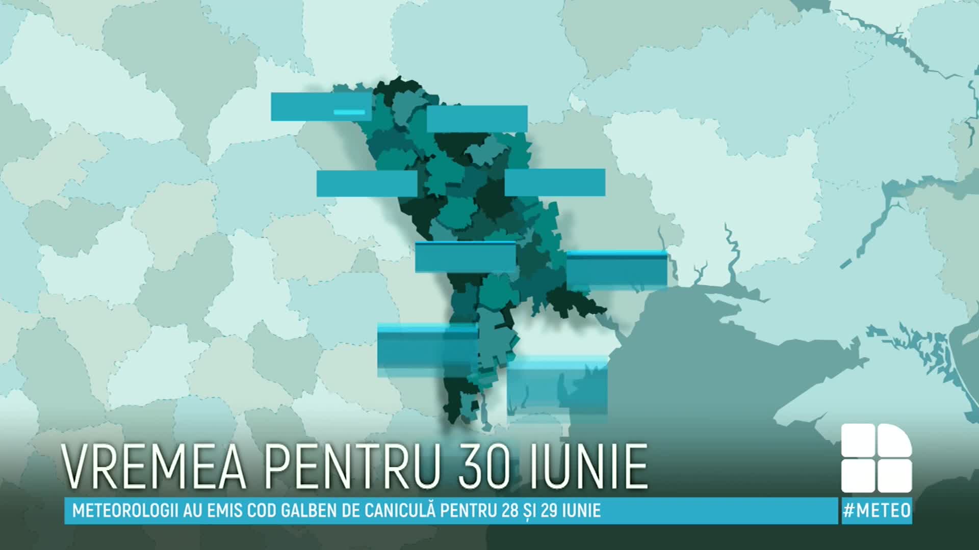 Astăzi, în toată ţara se aşteaptă ploi cu descărcări electrice. La Briceni şi Soroca vor fi 27 de grade, iar Bălţi va fi cu un grad mai mult. La Orhei se vor înregistra 29 de grade, iar la Tiraspol 30. La Leova se aşteaptă 31 de grade, iar la Comrat şi Cahul termometrele vor arăta 32 de grade.