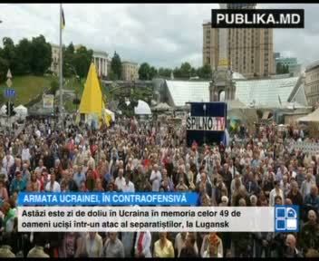 Ucraina îşi deplânge morţii. Astăzi este zi de doliu, după ce un avion cu 49 de oameni la bord a fost doborât de separatişti, în oraşul Lugansk. La miezul zilei, toată ţara a păstrat un moment de reculegere în memoria militarilor morţi.