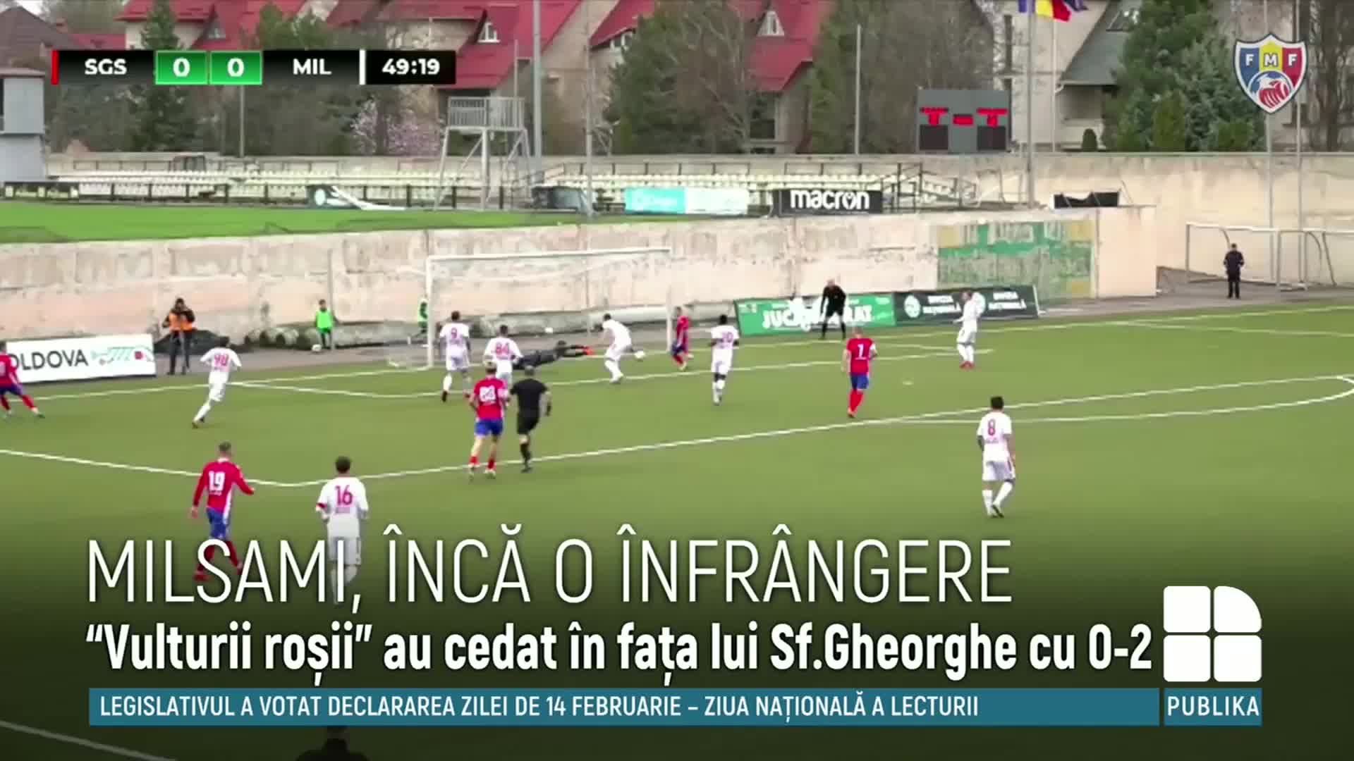 Probleme pentru Milsami Orhei, care a înregistrat a doua înfrângere la rând în Divizia Națională de fotbal. “Vulturii roșii” au cedat în fața formaţiei Sfântul Gheorghe Suruceni, scor 0-2, într-un meci din cadrul etapei a 22-a de campionat.