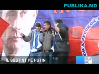 Votăm pentru Putin, deoarece a ajutat Moldova şi a ridicat economia Rusiei. Asta au spus mai mulţi tineri în faţa Ambasadei Federaţiei Ruse la Chişinău, în cadrul unui miting de susţinere a lui Vladimir Putin la alegerile prezidenţiale de duminică.