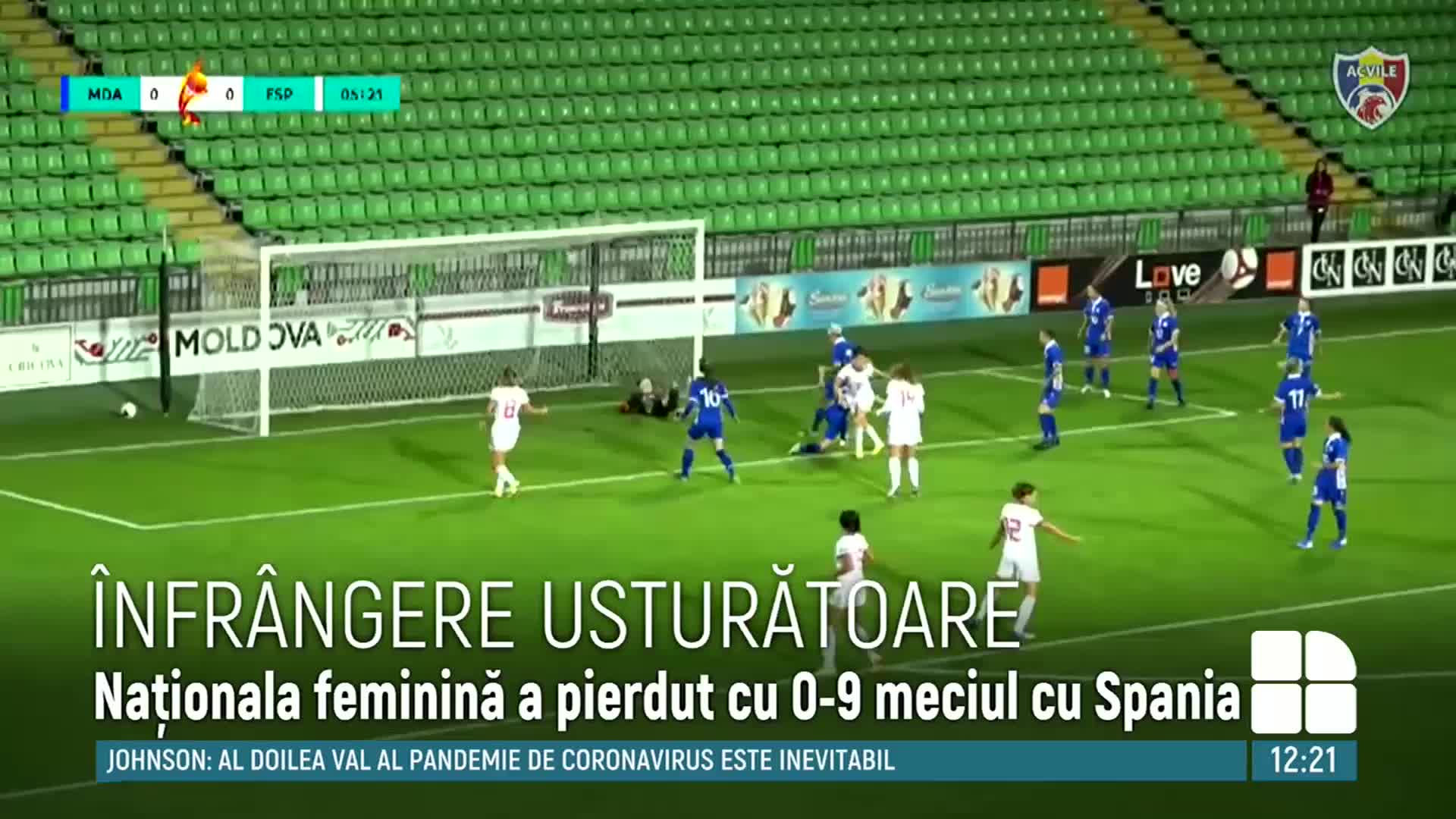 Naționala feminină de fotbal a Republicii Moldova a suferit o înfrângere usturătoare în preliminariile Campionatului European din 2021. "Tricoloarele" au pierdut cu 0-9 partida de la Chișinău cu Spania.
