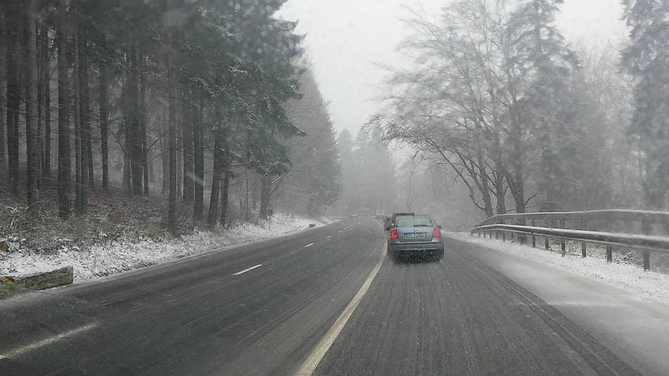 La munte, ploaia măruntă s-a transformat, luni dimineaţă, în ninsoare. Imaginile pe care le vedeţi au fost suprinse pe Valea Prahovei, în Predeal şi publicate de Digi24.