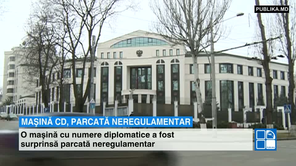 O maşină cu numere diplomatice, surprinsă parcată neregulamentar în centrul Capitalei. Cui îi aparţine