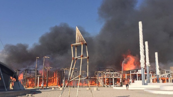 Incendiu în apropiere de o plajă din Crimeea. O scenă, care în trecut era folosită pentru festivalul "Kazantip", a luat foc ieri.