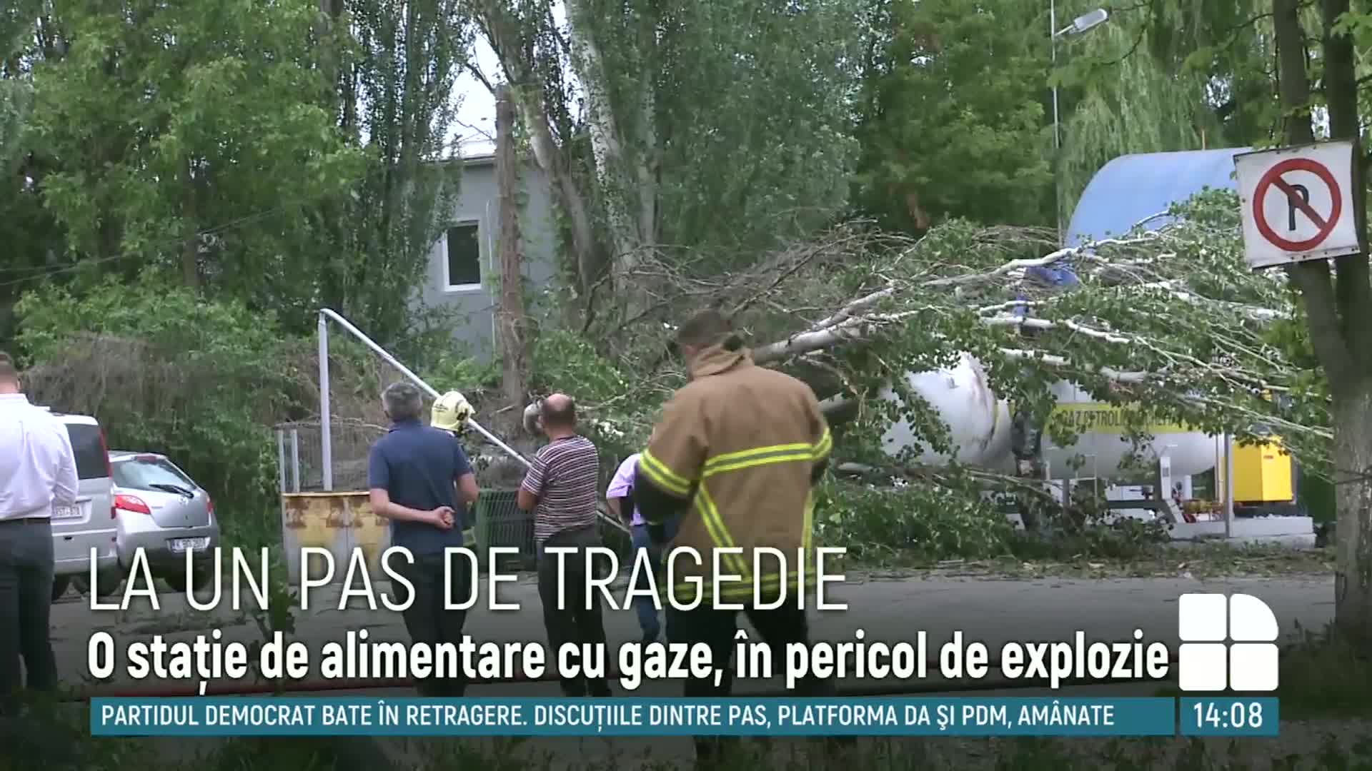 Pericol de incendiu în Capitală. Scurgere de gaze după ce un copac a căzut peste o cisternă (VIDEO)