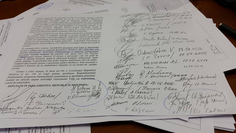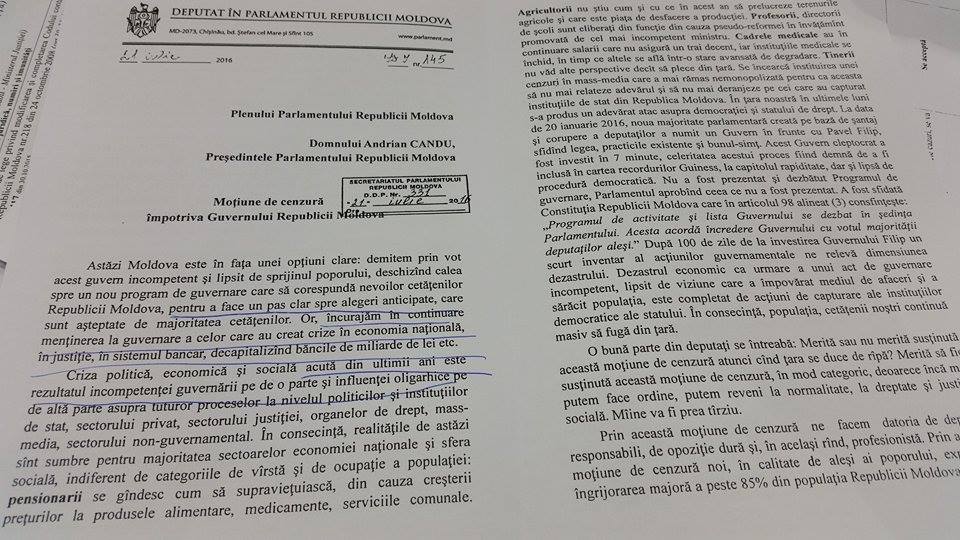 Moţiunea a fost înregistrată la Parlament şi semnată de 24 de deputaţi socialişti, şapte liberal-democraţi şi trei deputaţi din partea Partidului Comuniştilor.