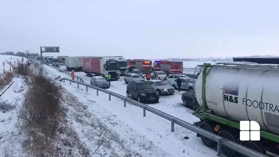 Haos pe o autostradă din Cehia. 30 de vehicule, printre care şi camioane, s-au ciocnit în lanţ. Cel puţin zece oameni au fost răniţi.