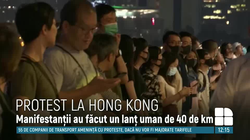 Moment emoţionant în timpul protestelor de la Hong Kong. Manifestanţii au făcut un lanţ uman de 40 de kilometri, în semn de dezacord faţă de acordul de extrădare pe care regiunea autonomă chineză vrea să îl încheie cu autorităţile de la Beijing.