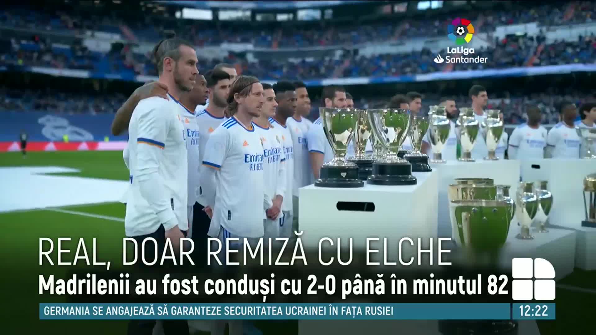 Real Madrid s-a salvat in extremis de la o înfrângere rușinoasă în La Liga. Liderul clasamentului a remizat pe teren propriu cu Elche, scor 2-2, marcând golul egalizator în prelungiri.